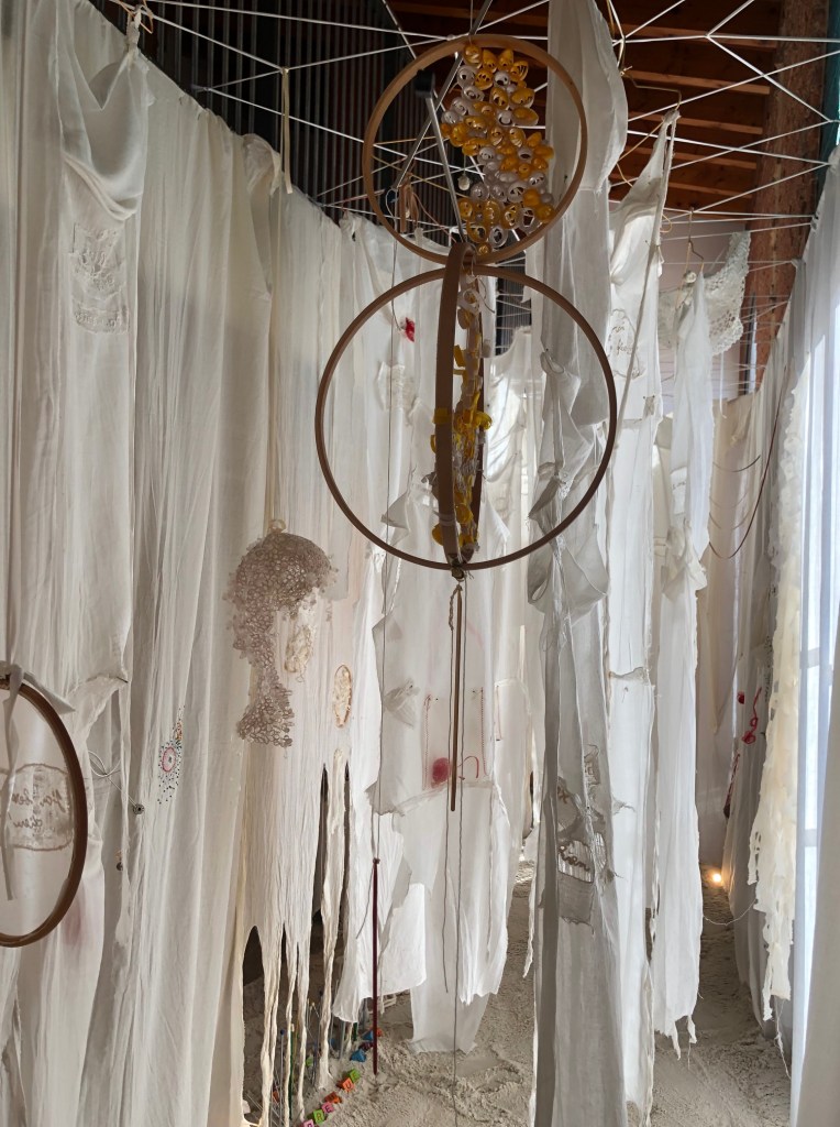 L’exposition, une première fois installée à la chapelle Saint-Jacques d’Eauze, est transplantée en la médiathèque de SAMATAN à l’invitation de la ville. Elle s’insère dans un projet artistique et culturel à l’adresse de tous les publics et autour d’une pièce dansée : « Dans la boucle » par la compagnie Carré Blanc.