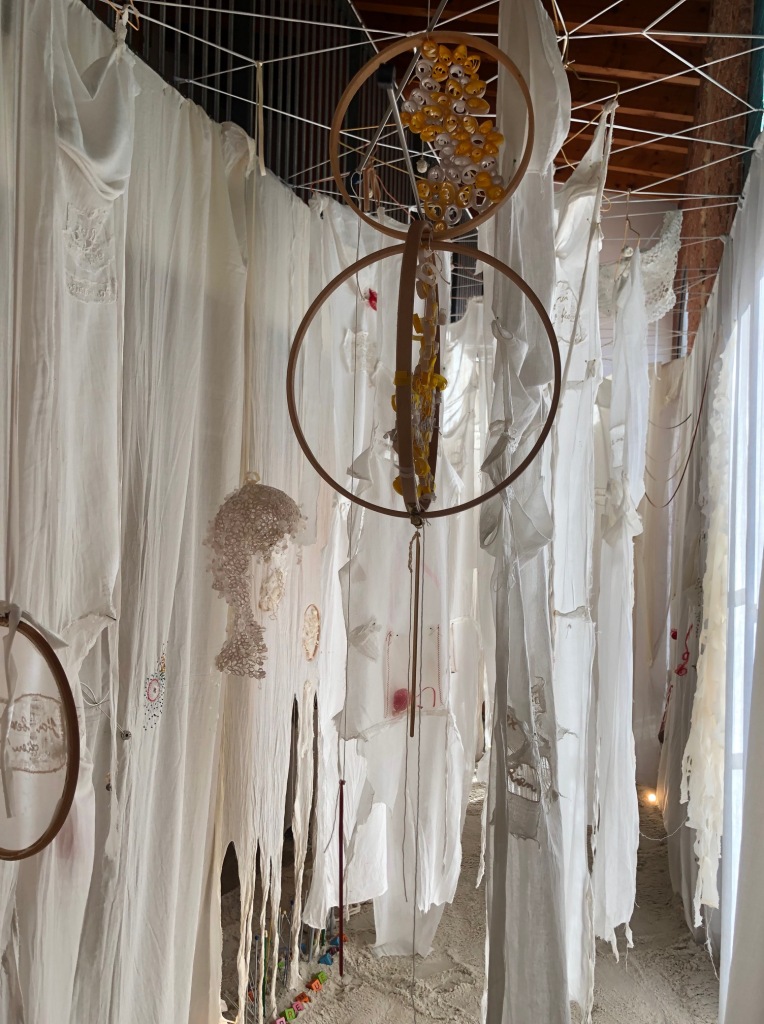 L’exposition, une première fois installée à la chapelle Saint-Jacques d’Eauze, est transplantée en la médiathèque de SAMATAN à l’invitation de la ville. Elle s’insère dans un projet artistique et culturel à l’adresse de tous les publics et autour d’une pièce dansée : « Dans la boucle » par la compagnie Carré Blanc.