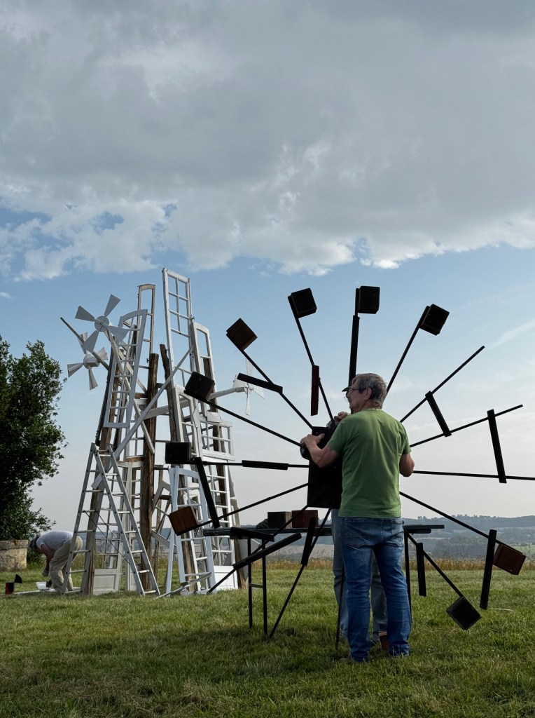 L’installation témoigne et préfigure ; elle nous questionne sur notre rapport au monde, à notre surconsommation, à l’avenir que nous préparons ou abimons, déjà, au bonheur de vivre simplement. Don Quichotte luttant contre les inégalités et la perte d’un monde, à moins d’un Cassandre incompris, Olivier LOULOUM nous prévient. Nous tirons trop sur la corde et regardons le train passer, comme ses vaches sur le pré. C.Bassetto
