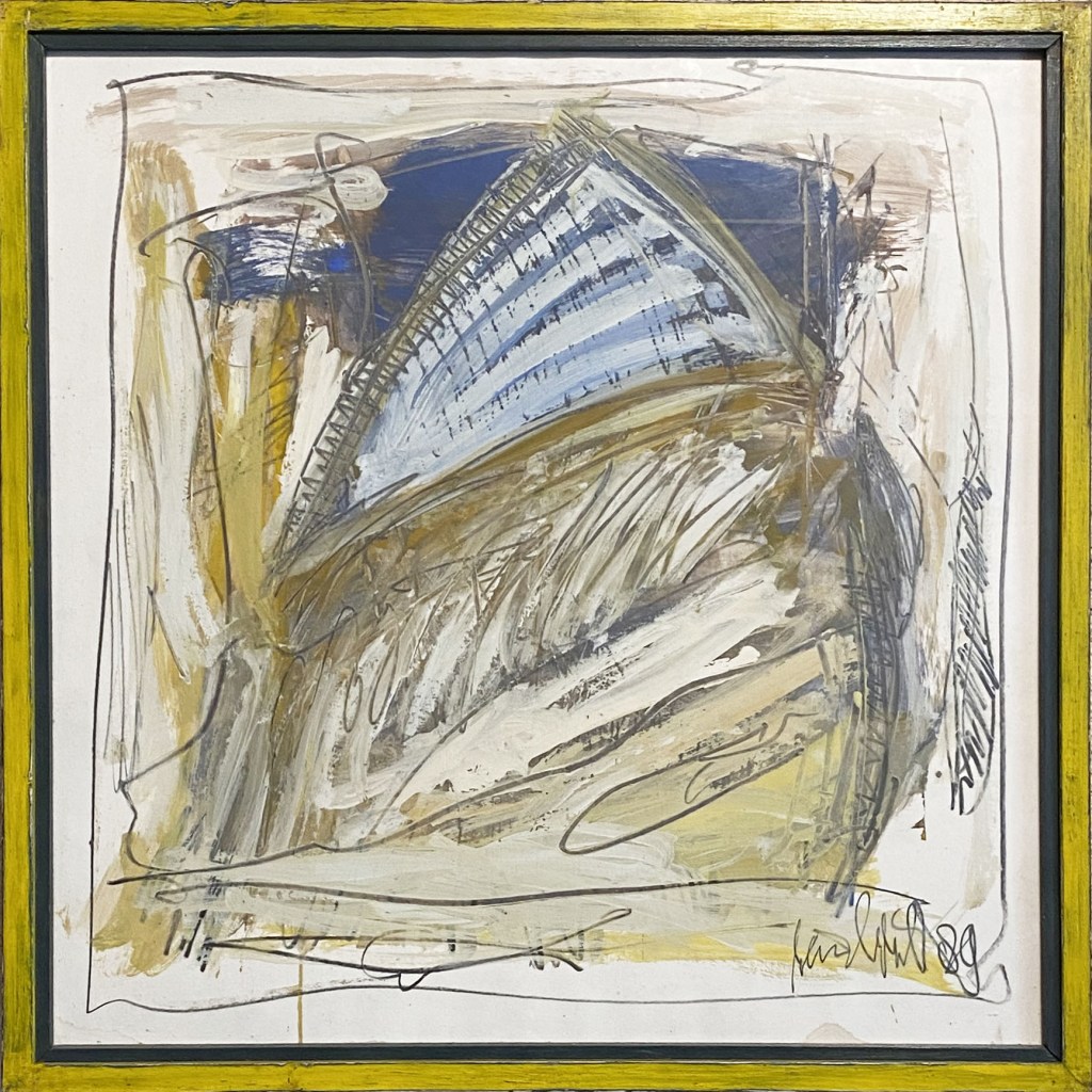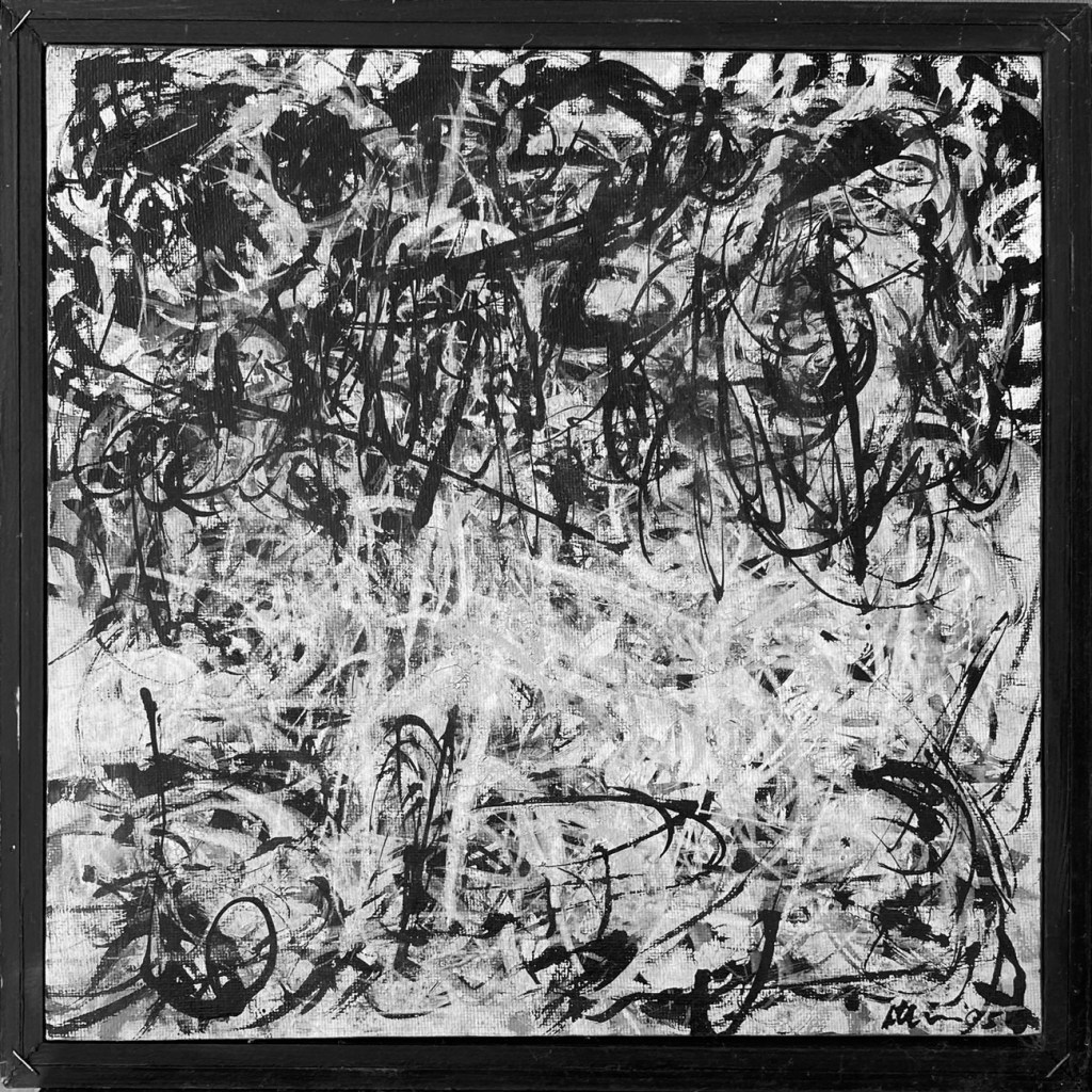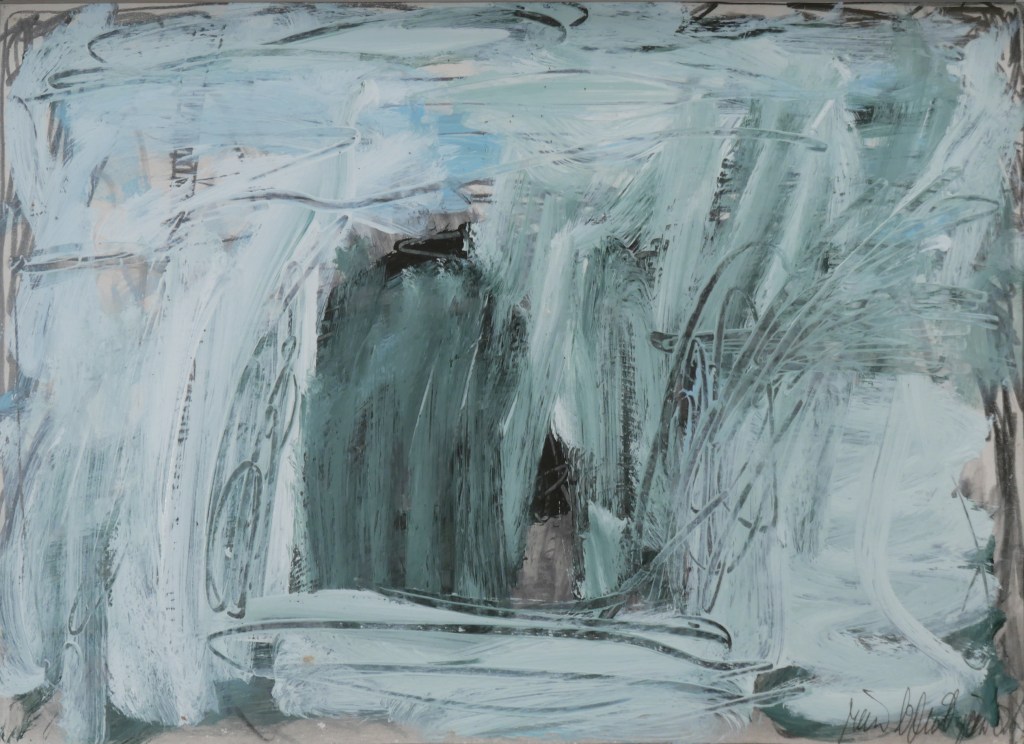 Rein BRIL traite de la limite entre peinture abstraite et peinture figurative, renouvelant la problématique de la figure comme l’abordait Bram Van Velde.L’œil doit être averti et curieux de dénicher, dans l’entrelacs des graphismes, le corps dénudé, la mandorle ou triangle suggestifs, la couleur qui trahit la présence de la chair.